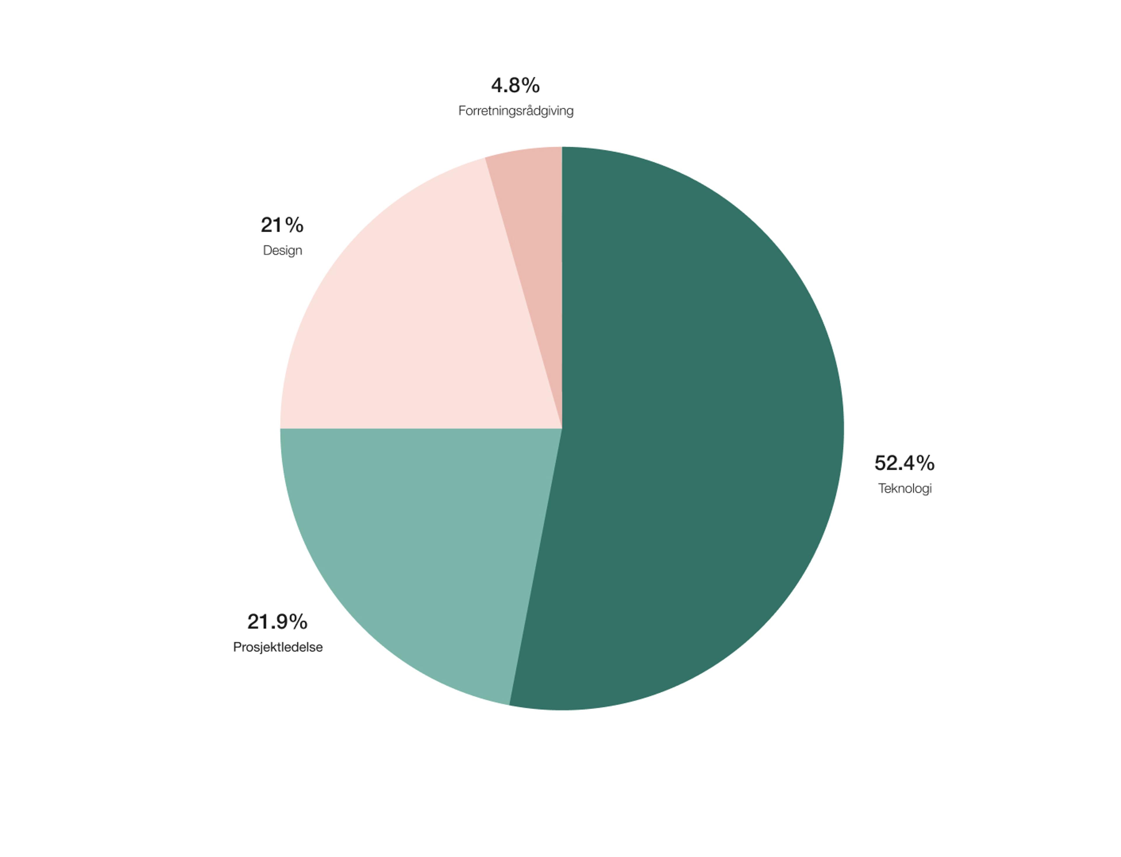 Utlyste oppdrag innen forretningsrådgivning og øker mest, med en vekst på henholdsvis 150 og 44 prosent mot samme periode i fjor. Oppdrag innen teknologi står for mer enn halvparten av de publiserte oppdragene på markedsplassen. Antall oppdrag innen teknologi går likevel noe tilbake sammenlignet med andre kvartal 2022 (-11 prosent YoY). Antall designoppdrag er på samme nivå som i fjor, og har omtrent doblet seg sammenlignet med første kvartal 2023.