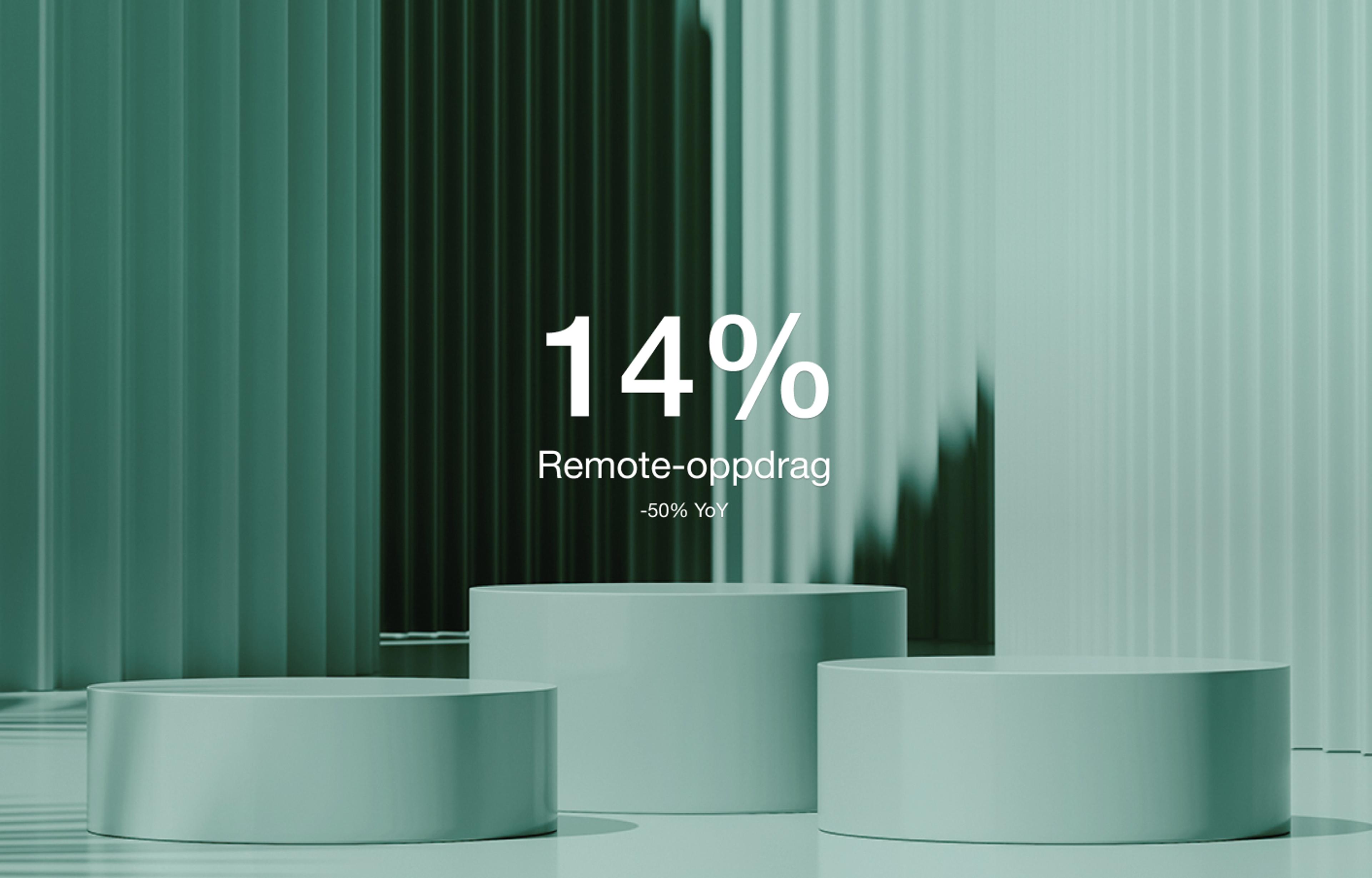 Andel oppdrag med mulighet for å jobbe remote har gått jevnt nedover den senere tiden, og ligger godt bak samme periode i fjor. I andre kvartal åpnet kun 14 prosent av oppdragene for at konsulenten kunne jobbe remote. I samme kvartal i 2022 var denne andelen 27 prosent.